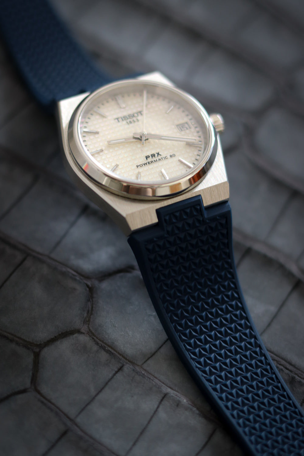 • Integrated Design: The strap seamlessly integrates with the Tissot PRX case, ensuring a gap-free connection that complements the watch's aesthetic.